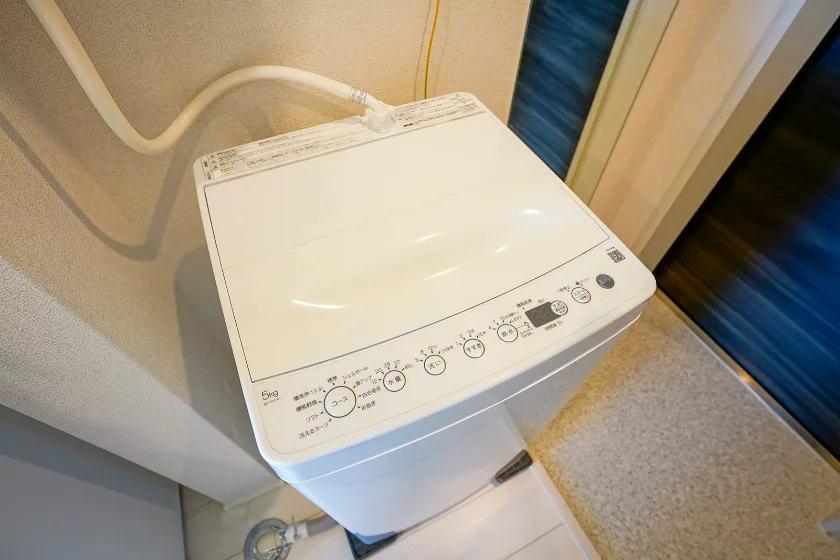 洗濯機、冷蔵庫、電子レンジ、照明器具が付いています。