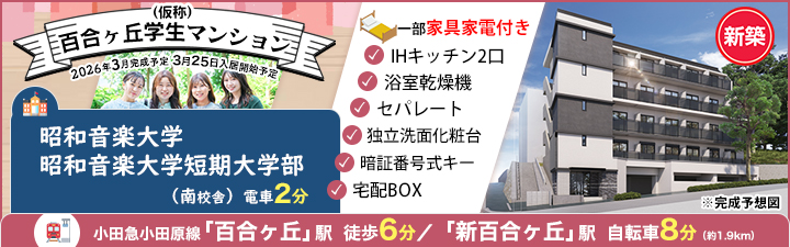 UniLife向ヶ丘遊園店・町田店(株式会社ジェイ・エス・ビー・ネットワーク)では学校近隣の学生マンション・学生会館を幅広く取り揃えております。 学生マンションなら、一般の賃貸マンションにはない食事付きや家具家電付き、24時間サポート体制、緊急時出動サービスなど、 初めてのひとり暮らしで不安な学生様と親御様に寄り添ったサービス・設備のお部屋を多数ご紹介可能です。