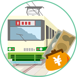 - ① 公共交通機関の領収書 ※日付と金額がわかるもの。