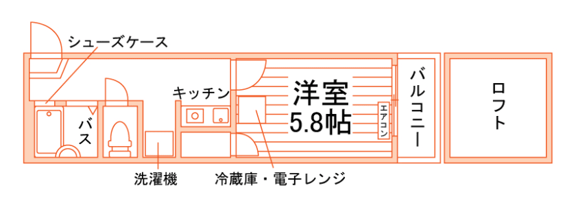 1K/19.58m²~21.8m²/6.1帖~6.8帖