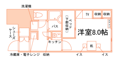 バストイレ別、家具家電付、コンビニまで4分