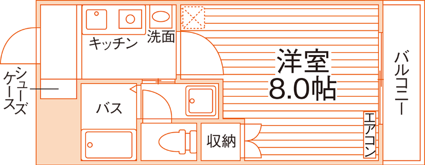 1K/24.88m²/8帖