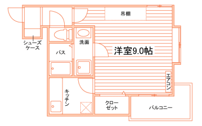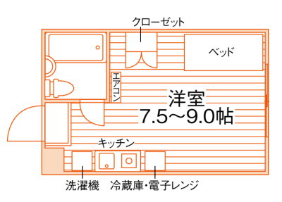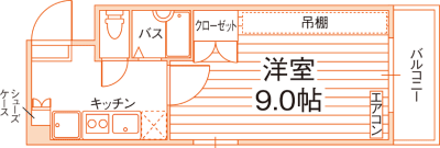 居室は広々9.0帖!温水洗浄便座や独立洗面化粧台など設備充実♪スーパー・コンビニ徒歩4分で買物も便利◎