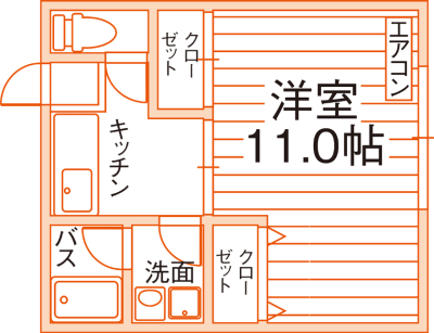 居室は広々11.0帖☆クローゼットが2つあり収納力◎人気のバス・トイレ別アパート!