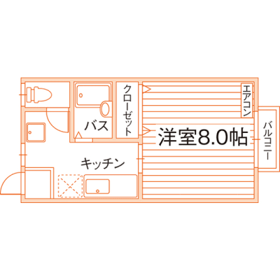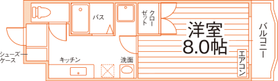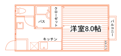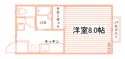 洋室8帖1Kタイプ!お風呂とトイレが別々のセパレートタイプ!