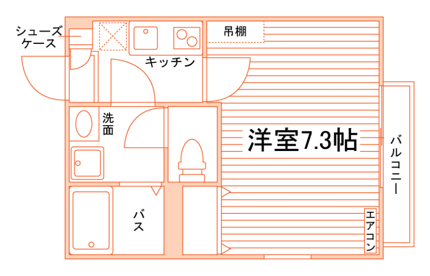 1K/21m²~21.1m²/7.3帖