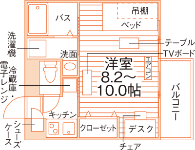 1K~1R/18m²~18.6m²/6帖~7.3帖