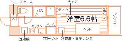 1R/15m²~16.6m²/6.4帖~7.3帖