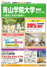 UniLifeは学生様のお部屋探しをサポートします!青山学院大学の学生様は【仲介手数料20%OFF】でご契約いただけます!