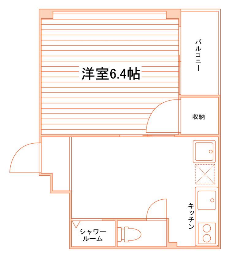 • 1K/23.1m²/6.4帖