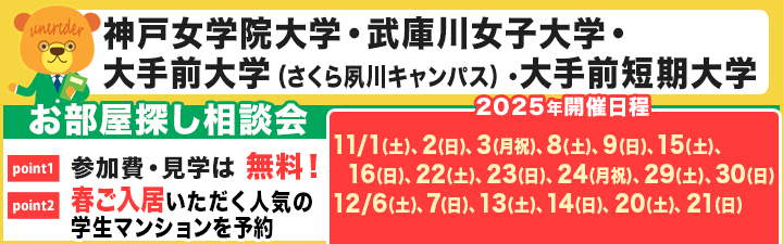 「神戸女学院大学」提携業者のUniLife西宮北口店からお知らせです♪