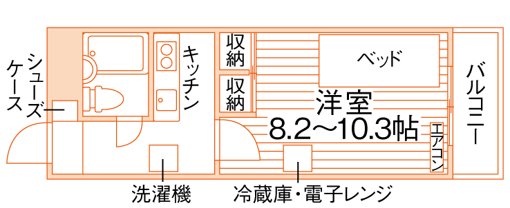 1K/24.9m²~28.3m²/8.2帖~10.3帖