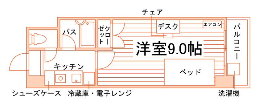 1R~1K/24.6m²~28.8m²/8.3帖~10.9帖 -
