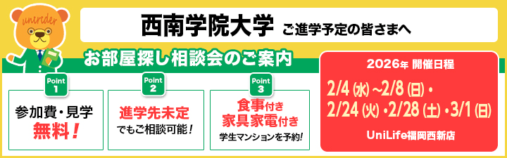 西南学院大学の通学に便利な学生マンション一覧 西南学院大学の通学に便利な学生マンション一覧