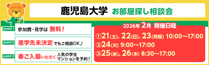 鹿児島大学(桜ヶ丘キャンパス)の通学に便利な学生マンション一覧