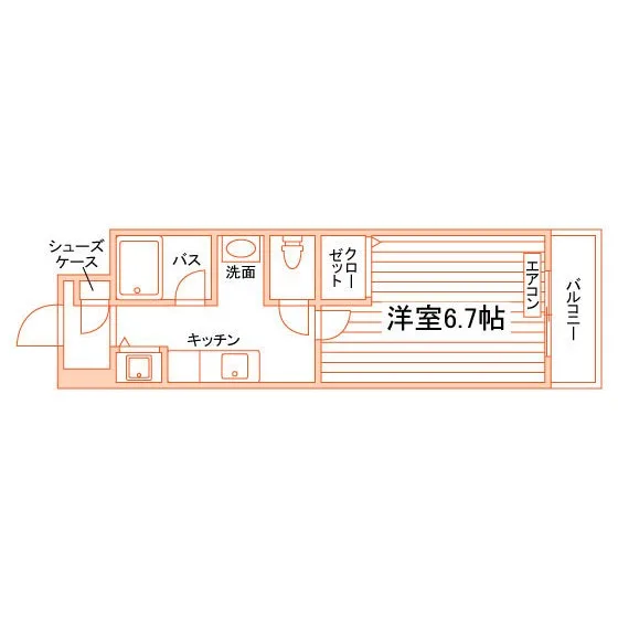 1K/22.96m²/6.7帖
