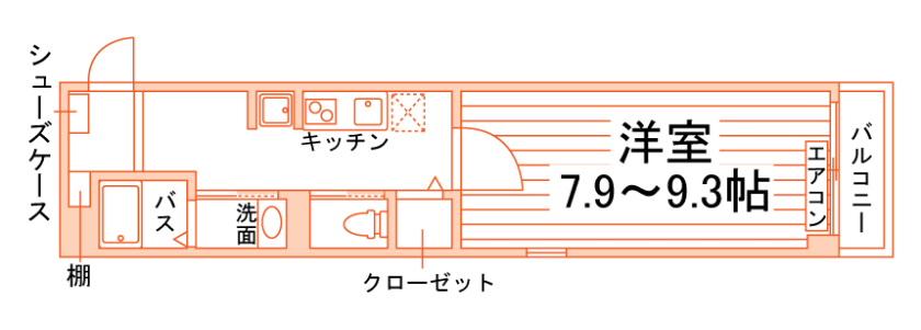 1K/24.38m²~25.79m²/8.7帖~9.5帖