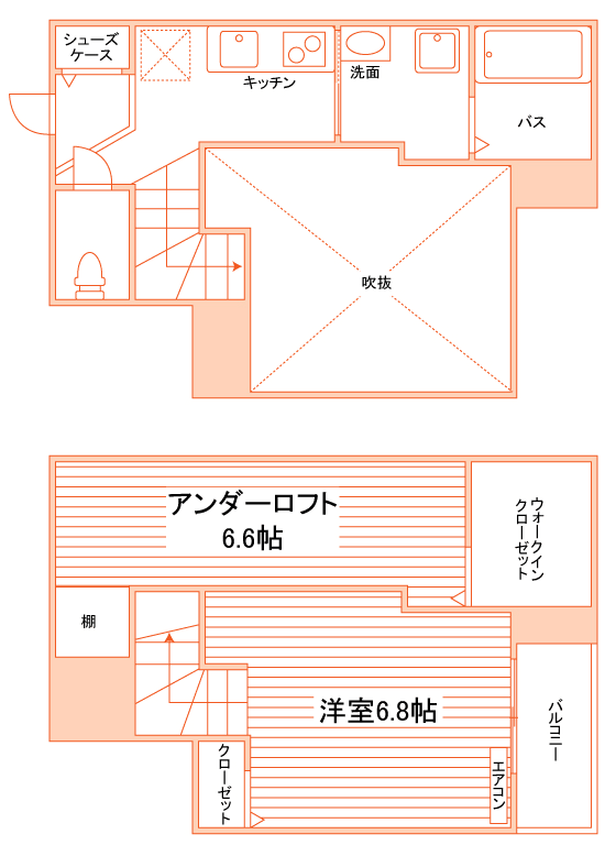 1K/18.9m²~21.6m²/6帖~7.2帖