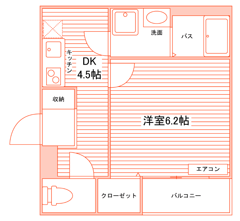 1R/19m²~19.7m²/6帖~6.2帖