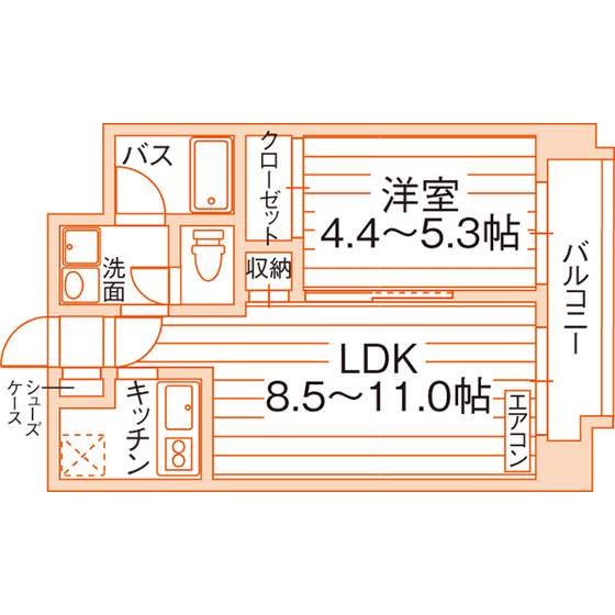 1R~1LDK/26.3m²~36.6m²/10帖~15.5帖
