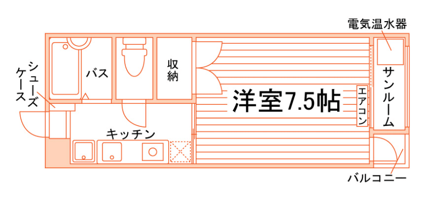 1K/24.46m²/7.5帖