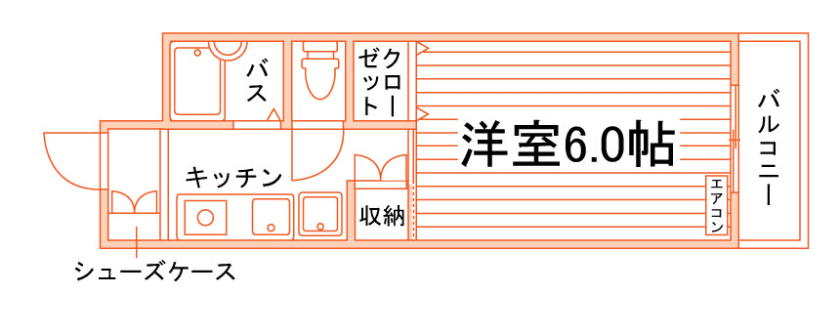 1K/19.58m²/6帖