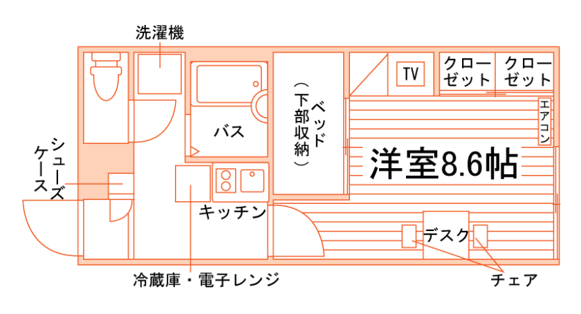 1K/23.18m²/8.6帖