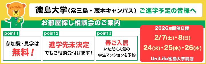 【徳島大学(常三島・蔵本キャンパス) お部屋探し相談会のご案内】