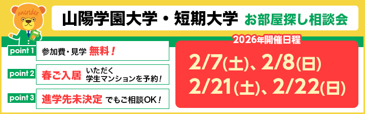 【山陽学園大学・短期大学 ご進学予定の方対象 お部屋探し相談会】