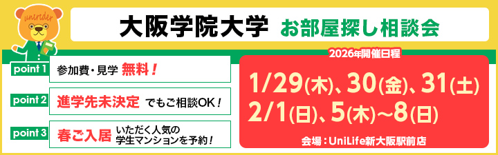 【大阪学院大学 お部屋探し相談会のご案内】