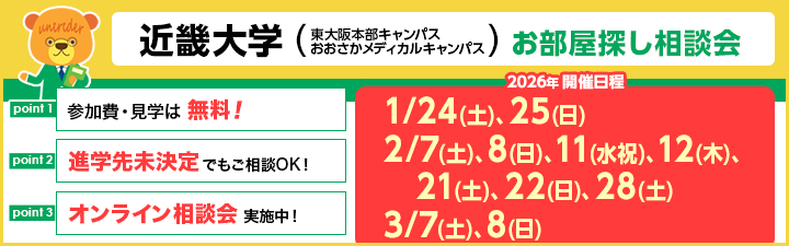 【近畿大学(東大阪本部キャンパス・おおさかメディカルキャンパス) お部屋探し相談会のご案内】