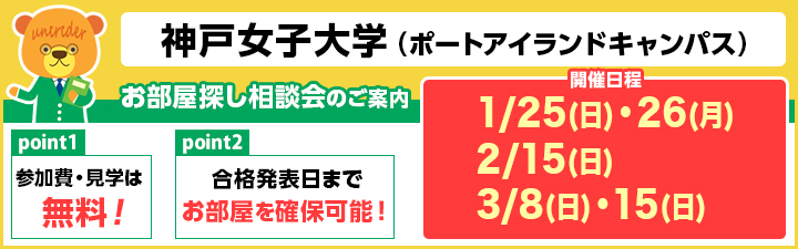 【神戸女子大学(ポートアイランドキャンパス) お部屋探し相談会のご案内】