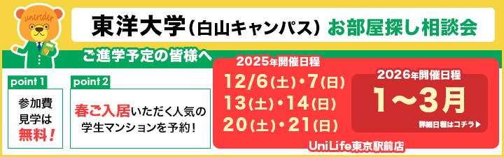 【東洋大学(白山キャンパス) お部屋探し相談会のご案内】