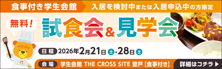 全室家具家電付き、朝夕2食付き(平日)で、初めてのひとり暮らしも安心してスタートできます。