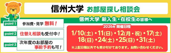 【信州大学 新入生・在校生対象 お部屋探し相談会のご案内】