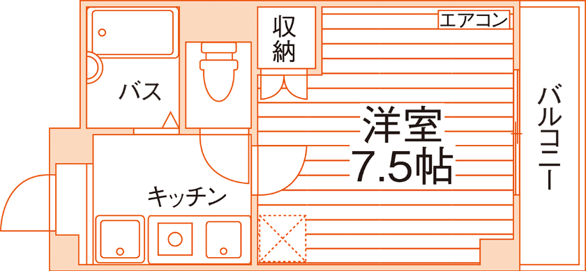 セパレート(バス・トイレ)/洗濯機置場(室内)/ガスコンロ(1口)/エアコン |