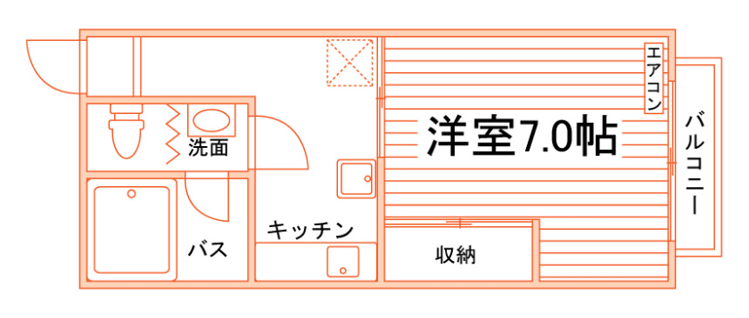 セパレート(バス・トイレ)/洗濯機置場(室内)/温水洗浄便座/ガスコンロ(持込)/居室照明器具/フローリング/バルコニー/収納/エアコン |