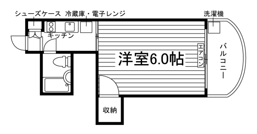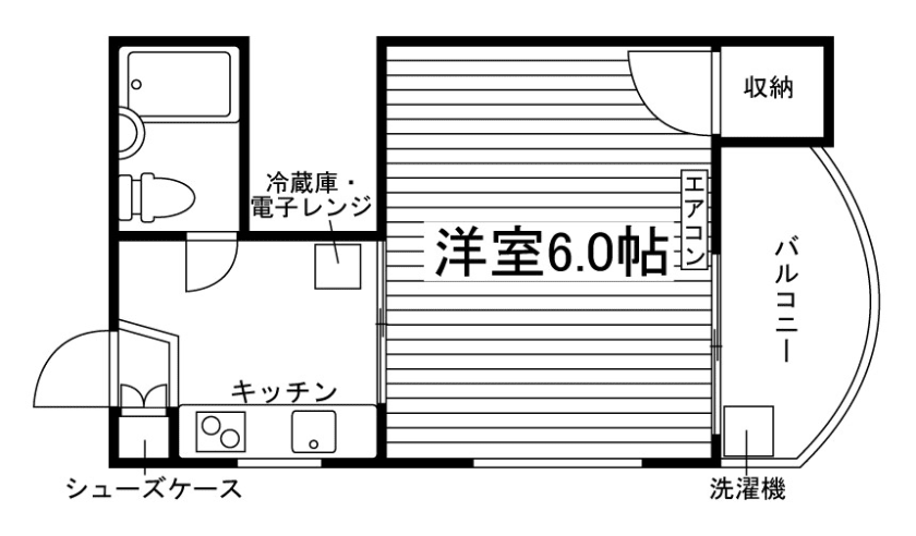 ユニットバス/洗濯機置場(室外)/洗濯機/ガスコンロ(2口)/家電付/冷蔵庫/居室照明器具/電子レンジ/フローリング/バルコニー/収納/WINクローゼット/インターフォン(TVモニター付)/エアコン |