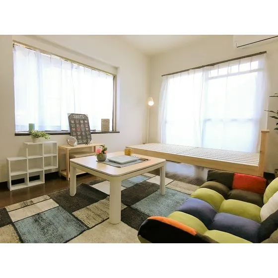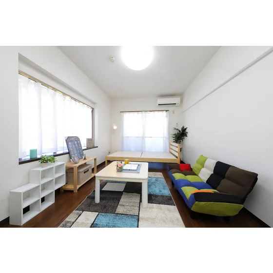 セパレート(バス・トイレ)/洗濯機/温水洗浄便座/ガスコンロ(1口)/家具家電付/冷蔵庫(2ドア)/居室照明器具/フローリング/バルコニー/収納/シューズケース/インターフォン(TVモニター付)/エアコン |