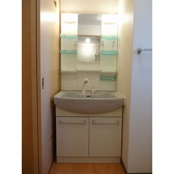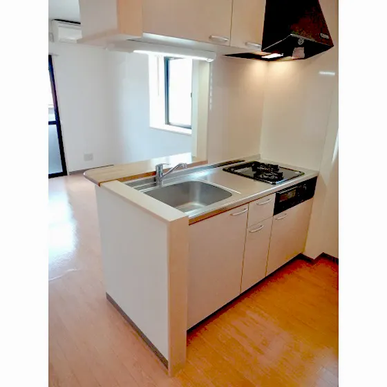セパレート(バス・トイレ)/独立洗面化粧台/洗濯機置場(室内)/温水洗浄便座/浴室乾燥機/ガスコンロ(2口)/システムキッチン/小窓(出窓)/バルコニー/収納/シューズケース/インターフォン(TVモニター付)/カードキー/エアコン |