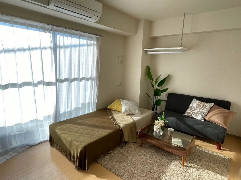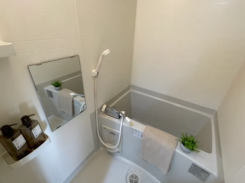 セパレート(バス・トイレ)/独立洗面化粧台(一部)/洗濯機置場(室内)/浴室乾燥機/IH+RHコンロ(2口)/家具家電付(一部)/玄関センサー感知ライト/居室照明器具/バルコニー/フローリング/防犯シャッター/吊棚/収納/シューズケース/インターフォン(TVモニター付)/暗証番号式キー/エアコン |