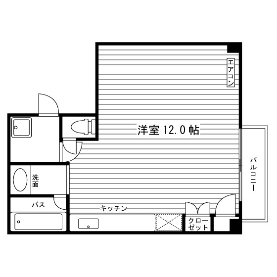 セパレート(バス・トイレ)/独立洗面化粧台/洗濯機置場(室内)/ガスコンロ(持込)/バルコニー/収納/インターフォン/暗証番号式キー/エアコン/個別給湯(ガス) |