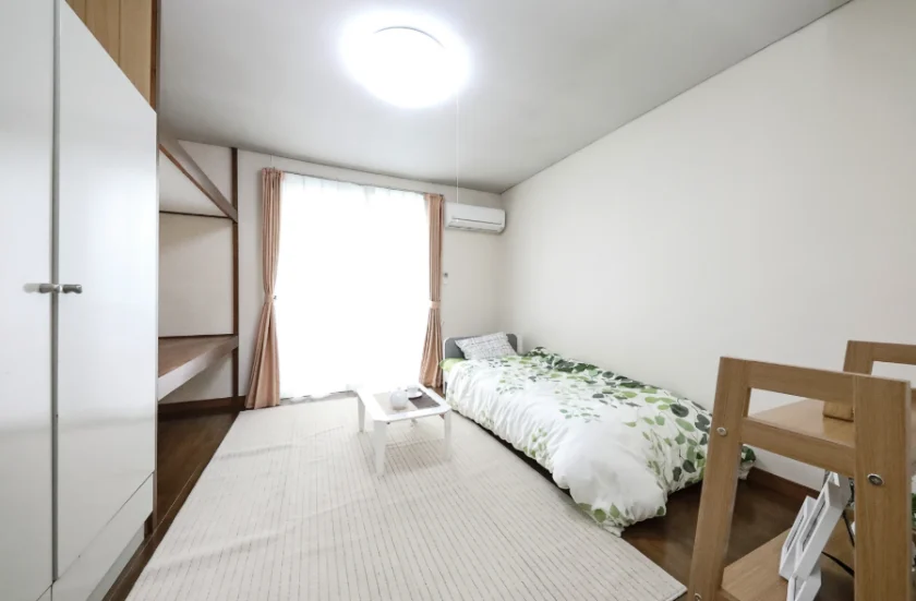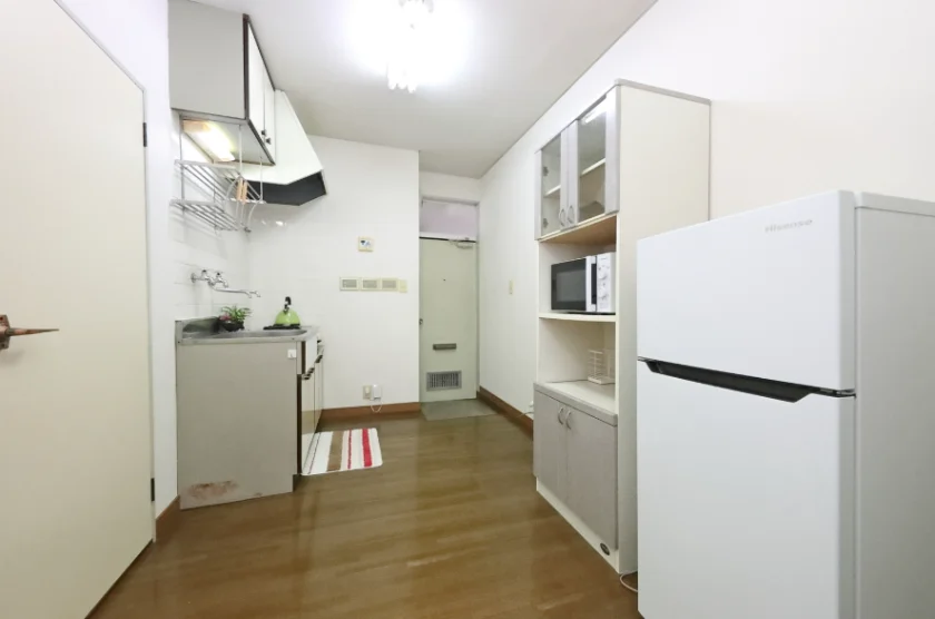 セパレート(バス・トイレ)/洗濯機置場(室内)/洗濯機/ガスコンロ(2口)/家具家電付/冷蔵庫(2ドア)/居室照明器具/ベッド/複層ガラス/フローリング/バルコニー/収納/シューズケース/インターフォン/防犯ディンプルキー/エアコン |
