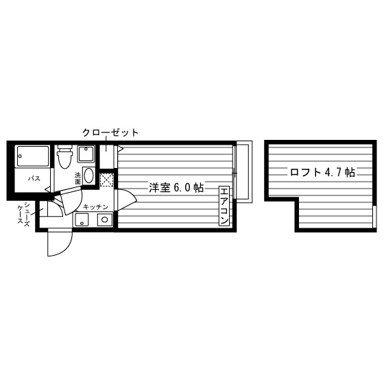 独立洗面化粧台/セパレート(バス・トイレ)/洗濯機置場(室内)/浴室乾燥機/浴室テレビ/温水洗浄便座/ガスコンロ(1口)/防犯シャッター/フローリング/ロフト/収納/床下収納/シューズケース/インターフォン(TVモニター付)/エアコン |