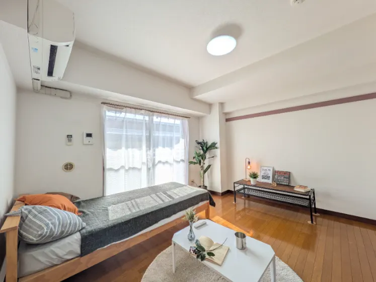セパレート(バス・トイレ)/洗濯機置場(室内)/温水洗浄便座/IHコンロ(1口)/家具家電付(一部)/居室照明器具/バルコニー/フローリング/収納/シューズケース/インターフォン(TVモニター付)/暗証番号式キー/エアコン |