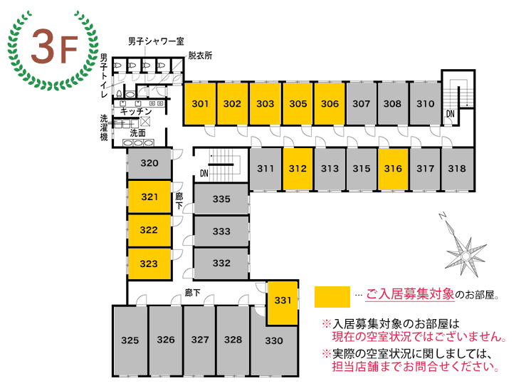 部屋番号 賃料 入居可能時期 間取/面積 向き 備考・条件