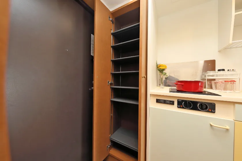 独立洗面化粧台/セパレート(バス・トイレ)/洗濯機置場(室内)/温水洗浄便座/RHコンロ(2口)/家具家電付(一部)/居室照明器具/玄関センサー感知ライト/フローリング/ロフト/バルコニー/収納/シューズケース/吊棚/インターフォン(TVモニター付)/暗証番号式キー/エアコン/個別給湯(電気)/個別給湯(電気温水器)/オール電化(ガス無し) |