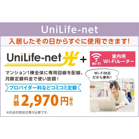 プロパンガス/BSアンテナ/CSアンテナ/UniLife-net光(J-FLASH) Wi-Fi対応/インターネット対応/インターネット(Wi-Fi対応)/オートロック/防犯カメラ/宅配BOX/駐輪場(原付50cc可) |