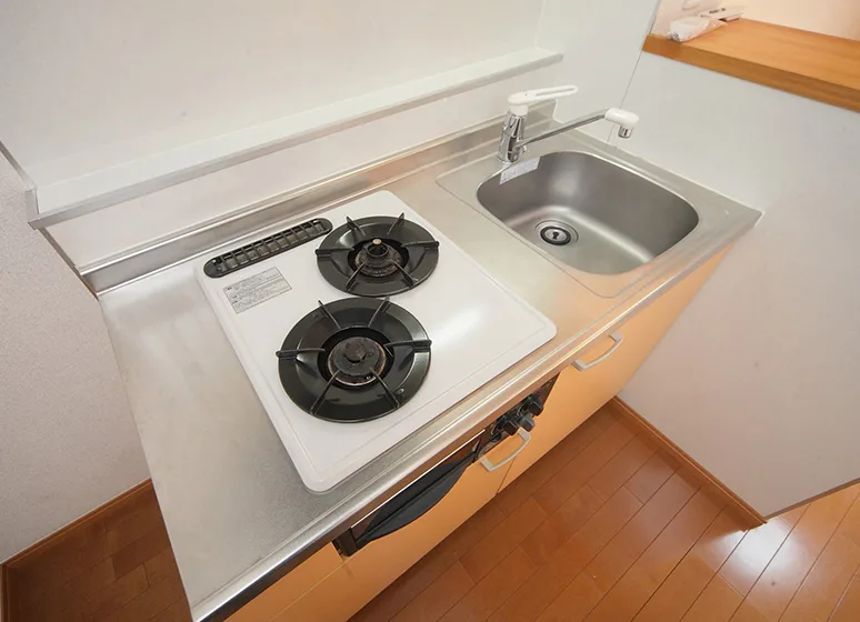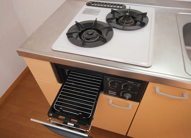 グリル付ガスキッチン2口で料理好きにオススメ!暗証番号式キーで安心です♪