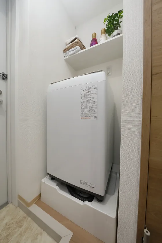 洗濯機、冷蔵庫、電子レンジ、照明器具が付いています。